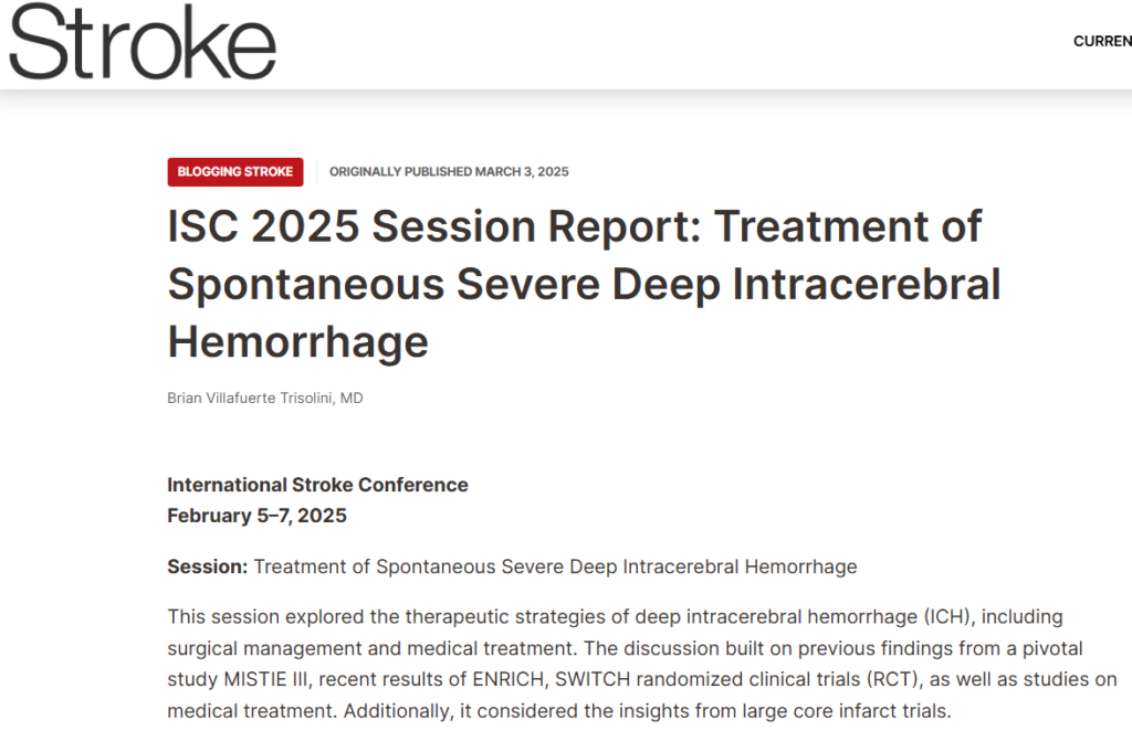Deep Intracerebral Haemorrhage: Advances and Challenges at ISC 2025
